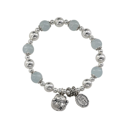 The bracelet is adorned with a Lucky Cat charm, a symbol of good fortune and optimism, and a silver talisman engraved with blessings — a reminder that clarity of mind attracts not just courage, but also positive energy and success.